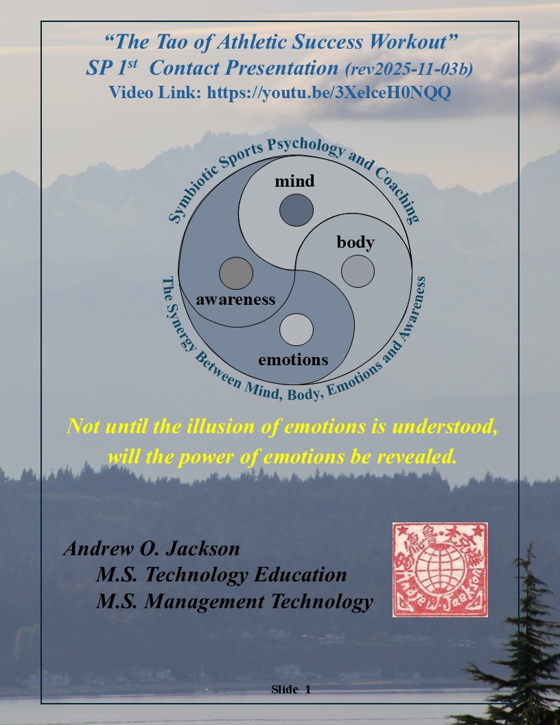 “The Tao of Athletic Success Workout” (immediately below) is a new sports performance psychology based on millions of years of evolutionary survival of the fittest, strongest, most agile and most powerful and clever and their evolved symbiotic harmony of mind, body, emotions, and awareness within a personal power of Qi. “The Tao of Athletic Success Workout” is a freely available self-directed 10-hour program with “Introduction” Videos for hours 1-5 available on YouTube. Hours 6-10 are a freely available instructional, fill-in-the-blank “Exploration” text that further develops an athlete’s skills, abilities, and understandings of their “Quantum Being” nature beyond their Newtonian linear time and 3D spacial awareness, strengths, and power.