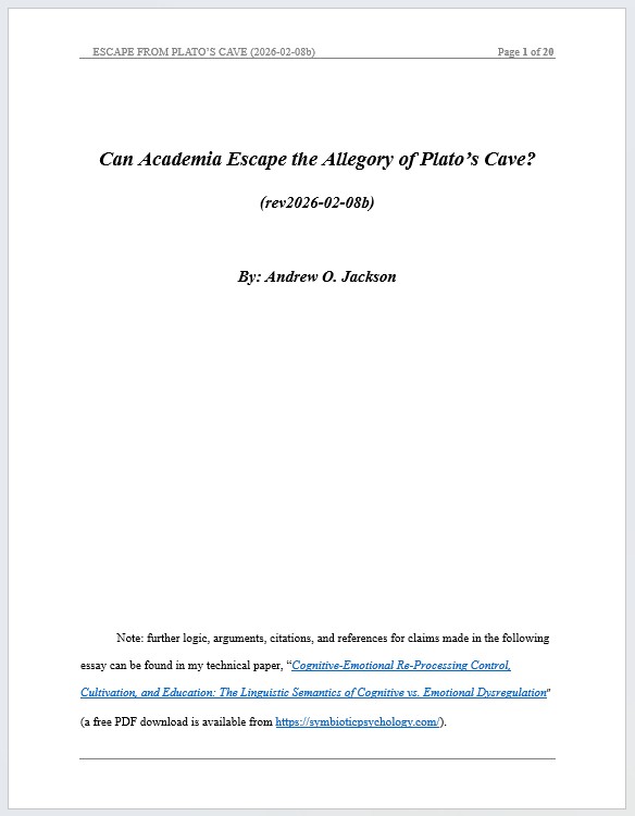 Reference: Jackson, A.O. (2026). (Technical Paper with Supplements.) Cognitive-Emotional Re-Processing Control, Cultivation, and Education: The Linguistic Semantics of Cognitive vs. Emotional Dysregulation. Symbiotic Psychology Press. (15,500-word paper, free PDF download, new tab)