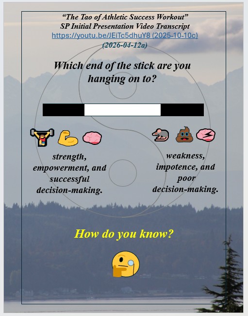 “The Tao of Athletic Success Workout” (immediately below) is a new sports performance psychology based on millions of years of evolutionary survival of the fittest, strongest, most agile and most powerful and clever and their evolved symbiotic harmony of mind, body, emotions, and awareness within a personal power of Qi. “The Tao of Athletic Success Workout” is a freely available self-directed 10-hour program with “Introduction” Videos for hours 1-5 available on YouTube. Hours 6-10 are a freely available instructional, fill-in-the-blank “Exploration” text that further develops an athlete’s skills, abilities, and understandings of their “Quantum Being” nature beyond their Newtonian linear time and 3D spacial awareness, strengths, and power.