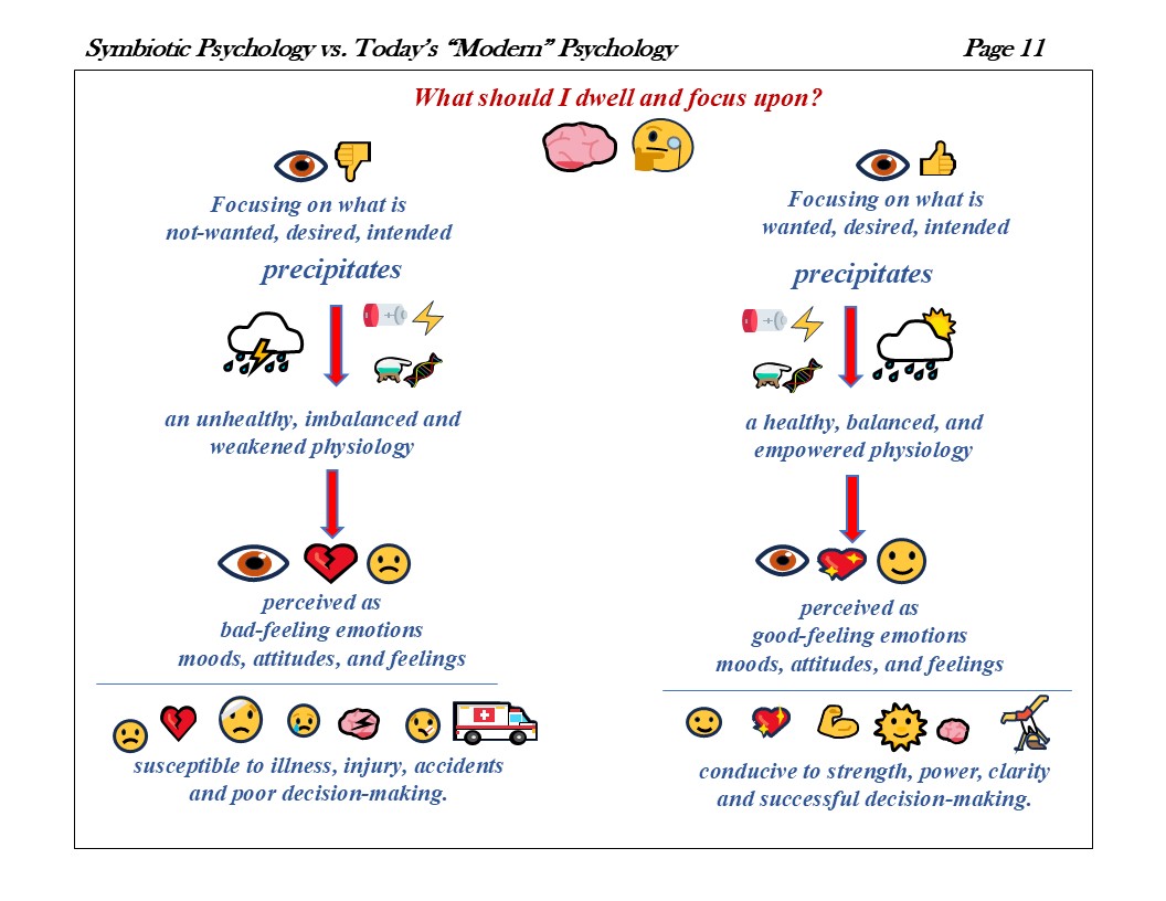 I developed my own therapy. I used my emotions to guide my cognitive activities to find a better feeling, or less bad-feeling cognitive activity (thought, memory, belief, imagining, perception, reasoning, discernment). My premise was that the better feeling emotions, moods, attitudes and feelings correlated with a healthier biochemical “balance”, and bad feeling emotions, moods, attitudes, and feelings correlated with an unhealthy, biochemical imbalance.