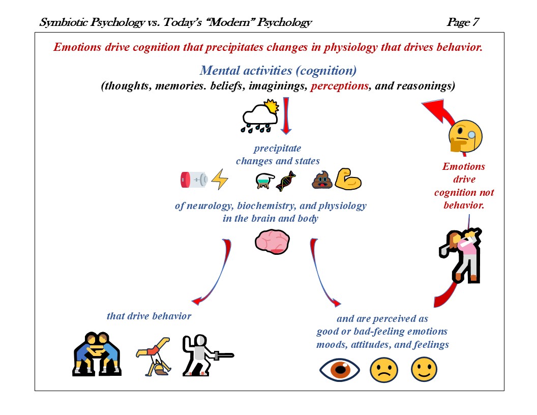 But cognition, not emotion, precipitates the good or bad feeling physiology in the brain and body that drives behavior. Emotion is not causal to these changes and states of neurological, biochemical, and physiological being in the brain and body, cognition is! Cognition is causal and emotion is a perceived effect. Cognition precipitates the physiology that drives destructive behavior and is perceived as emotion. And it is these dangerous cognitive activities of the mind that are being controlled, regulated, and managed by scientifically proven, well researched, documented, and published evidence-based cognitive behavior modification therapies that utilize good or bad feeling emotional awareness to evaluate their effectiveness.